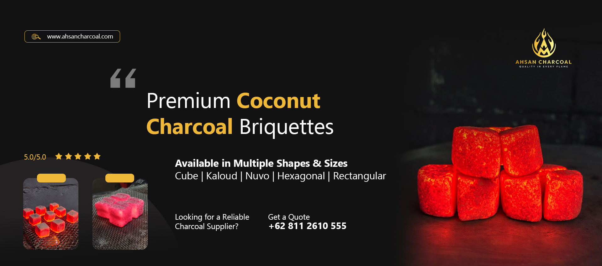 Ahsan Charcoal is a trusted Indonesian manufacturer company specializing in the production of coconut shells charcoal briquettes for shisha/hookah with eco-friendly coconut charcoal, long-lasting, and designed for superior heat retention with low ash residue. Based in Pasuruan, East Java, we manufacture high quality briquettes in various shapes and sizes.
