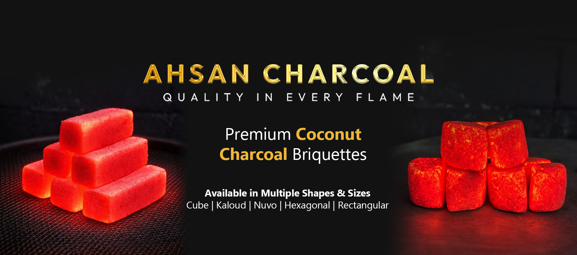 Ahsan Charcoal produces premium coconut shell charcoal briquettes for hookah and shisha markets worldwide. Made from 100% natural coconut shells, our briquettes provide stable heat, long burning time, and low ash residue.
